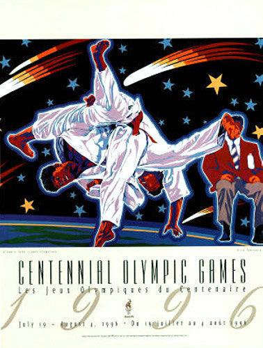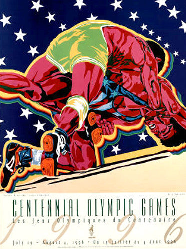 Add a splash of history, action, and athleticism to your wall and your collection! From artist Hiro Yamagata's exquisite series of official event posters commissioned for the 1996 Atlanta Olympics, this poster boldly captures the grace and beauty of the sport of Rhythmic Gymnastics! Amazing artwork, great action, and a rare opportunity for rhythmic gymnasts to display their athletic passion. Note: This poster is now long out-of-print; limited quantity remains in our warehouse.