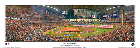 Bring your wall alive with the ultimate celebration of the home of the Houston Astros, Minute Maid Park! This spectacular panoramic print, from legendary sports photographer Rob Arra, captures the majestic scene at the opening ceremonies of Game 1 of the 2019 World Series. With the giant flag unfurled across the outfield, the players lined up along the baselines after being introduced, and the fans singing along to The Star Spangled Banner...SNAP! The moment is preserved for all-time, and is now available for your wall.