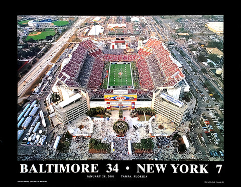 Super Bowl XXXV (2001) Baltimore Ravens 34, New York Giants 7 at Raymond James Stadium in Tampa 22x28 Poster - Aerial Views