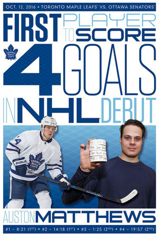 Auston Matthews 4-Goal Debut Toronto Maple Leafs Official Commemorative POSTER - Trends 2016