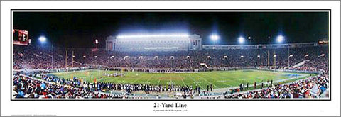 With this poster, you are transported back to a glorious Sunday night by the lake, at the classic old-school home field of da Bears. Like all prints in photographer Rob Arra's Everlasting Images series, every detail of this beautiful stadium is here - the action on the field, the players and coaches on the sidelines, the spectators, and the scoreboards, and the incredible classical structure above the south grandstand. From before the latter-day renovation, this poster displays Soldier Field in its original form. A beautiful piece that deserves a nice frame and a prominent place on the wall of any fan - perfect for home, office or locker room!