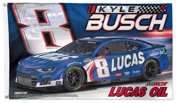 Item # WI-FLAG-398-24Kyle Busch Lucas Oil #8 Official NASCAR Deluxe-Edition 3'x5' Banner Flag - Wincraft 2024