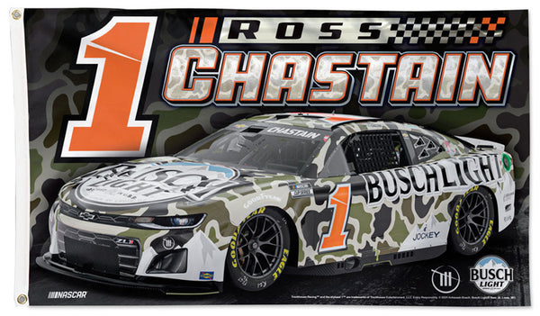 Item # WI-FLAG-286-24-BRoss Chastain NASCAR #1 CAMO Busch Light Chevrolet (2024) Official 3'x5' Deluxe Flag - Wincraft Inc.