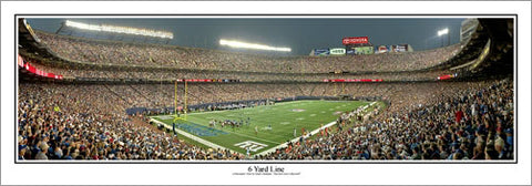 With this spectacular poster, you are transported inside New York Giants game night at Giants Stadium in New Jersey on September 4, 2008, during one of the greatest eras in an amazing franchise history. From this unique corner angle, you can see it all: the bright lights contrasting brilliantly against the darkening evening sky; the scoreboards, banners, and all the stadium details; the fans packed into the bowl; the sideline entourages; and, of course, the action on the field - the culmination of a perfect opening drive to open the season! From the lens of legendary stadium photographer Rob Arra, this amazing print gives you the scene in perfect focus, clarity, and detail. Complete with sharp white-bordered design, this is a true beauty for your wall! Whether you were at the game that night, are a long-time Giants fan, or are simply a lover of NFL stadiums, this print is for you - a must for your wall and your collection.