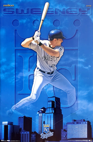 With great personality, hometown loyalty, and a booming bat, Mike Sweeney became the most beloved Kansas City Royals players since the great George Brett! This poster is a spectacular tribute to K.C.'s super-slugger of an era - awesome gameday action, and a stunning Royal-Blue design that looks great on the wall. A rare Royals poster, perfect for the wall of any true fan! Note: this poster is now out-of-print; limited quantity remains in our warehouse.