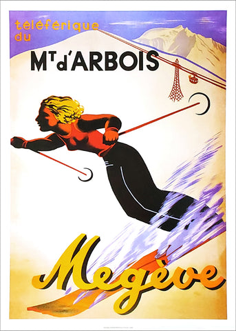 Classic Skiing "Mont d'Arbois, Megeve" (1950s) Vintage Poster Reproduction - Editions Clouet