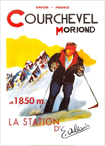 Skiing "Courchevel-Moriond" Savoie, France c.1946 Vintage Poster Reproduction - Editions Clouet (France)