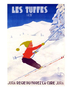 Skiing "Les Tuffes" c.1950 Vintage Jura, France Ski Poster Reprint- Editions Clouets