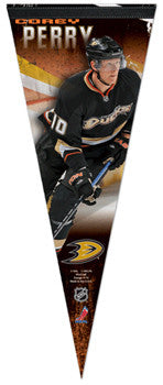 Own a rare and beautiful collector's item, celebrating the superstar sniper of the Anaheim Ducks! This brilliant pennant, from Wincraft Inc.'s limited-edition Player Series, commemorates the great Corey Perry with style and flair. With rare game-action photography, and amazing graphics, this is both a beauty for your wall, and a valuable collector's item for years to come. Part of WinCraft's premium pennant line, the clear and brilliant photography and graphics are printed on a revolutionary soft-and-durable "Roll-it-and-Go" felt that can be tucked tightly away if necessary, and look just as good when unfurled again, ensuring your pennant will continue to look great and last a lifetime. A must-have addition to the wall of any fan, and a valuable collector's item that won't last long!
