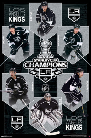 Celebrate, L.A. hockey fans - 45 years into the history of the franchise, these Kings would not be denied, and the Stanley Cup is finally yours! This poster commemorates the dramatic climax to the Kings' inspirational 2012 run and the 6-game victory over the New Jersey Devils to win the Stanley Cup championship. This fantastic poster features a beautiful silver-and-black commemorative design, and six of the superstars that combined talent, personality, and guts to lead the 8th-seeded underdog all the way to glory: Captain Dustin Brown, dynamic All-Star Anze Kopitar, key acquisitions Mike Richards and Jeff Carter, superstar defenseman Drew Doughty, and the stone wall himself, goaltender Jonathan Quick. A beauty for your wall, and a valuable collector's item for years to come - a must for any true Kings fan! Championship commemorative posters are always published in limited quantity; grab yours now while you still can!