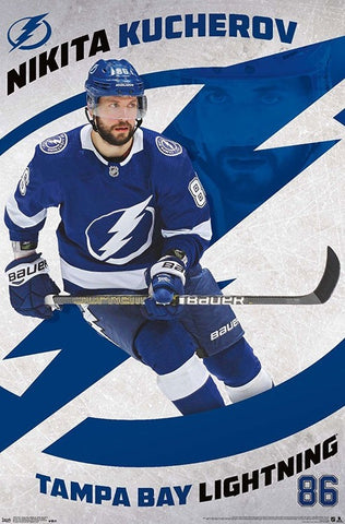 Step onto the ice with one of hockey's greatest talents of a generation! This amazing poster features the scoring champion extraordinaire, "Kuuuuch" himself, Nikita Kucherov. Featuring an incredible action shot of the Russian sensation eyeing the play with fierce intensity, looking great on the ice at Amalie. Kucherov scores, the crowd goes wild! Fantastic action photography, awesome design - a beauty for the wall of any true fan, and a valuable collector's item for years to come!