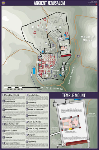 Ancient Jerusalem c.44 BCE Map and Guide Wall Chart Premium Reference Poster - Useful Charts