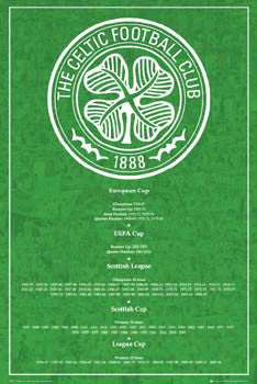 Celebrating the history of Scotland's greatest club! This amazing poster features the official Celtic Football Club four-leaf-clover est. 1888 crest, and a listing of all team championships since the original Scottish Cup in 1892. Listings include: European Cup (Quarter Finalists & better), UEFA Cup (Quarter Finalists & Runners Up), Scottish League Championships, Scottish Cup Championships, and League Cup victories. Perfect for the wall of any true fan! Note: this poster is now out-of-print; limited quantity remains in our warehouse.
